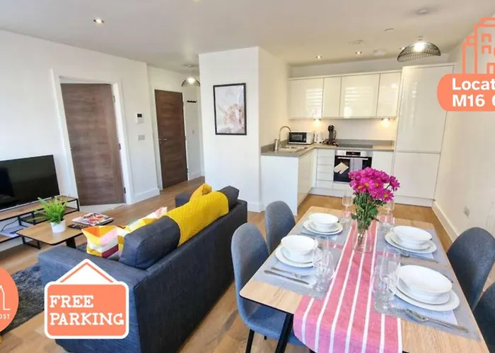 The apartment provides coffee/tea making facilities and a fully equipped kitchen with a microwave, a fridge, and kitchenware. Manchester airport is located 15 km away, while Chester Road/Warwick Road bus station is within easy walking distance of Free Parking: Old Trafford Apartment.